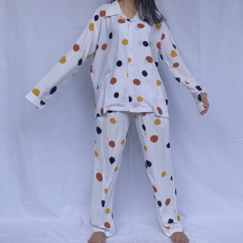TALON SET Material RayonAll size fit to XLBust 120cmLength 65cmSleeve 60cmPantsWaist 60cm stretch up to 110cm (elastic with band)Length 98cmThighs 60cm—meant to be worn oversized and loose.there might be slightly different colors due to the lighting and screen resolution. every piece is hand-dyed by our local artisan, thus every piece may experience a slightly different pattern—which will make your piece one of a k
