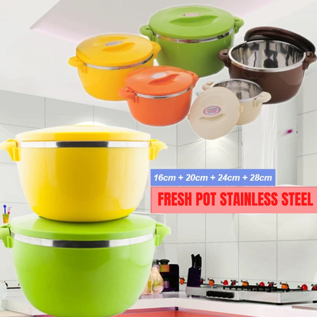 Description :Set Of 4 Stainless Steel Fresh Pot is suitable for home use.Product Dimension : 16cm / 20cm / 24cm / 28cmProduct Material : Stainless SteelProduct Weight : 800gProduct Includes :1pc x 16cm Stainless Steel Fresh Pot1pc x 20cm Stainless Steel Fresh Pot1pc x 24cm Stainless Steel Fresh Pot1pc x 28cm Stainless Steel Fresh PotSangat cocok untuk melengkapi dapur anda , bisa digunakan untuk hidangan besar diacara pesta , wedding , dsbTIDAK BISA PILIH / REQUEST WARNA . WARNA DIKIRIM RANDOMReady stock Yukk mari diorderBarang selalu dicek sebelum dikirim , kerusakan saat pengiriman diluar tanggungjawab kami ,resiko pengiriman ditanggung pembeli membeli = setujupacking free buble dan fr