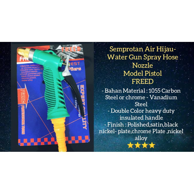 Deskripsi Semprotan Air Hijau Model Pistol FREED- Hose Nozzle Water Gun Spray FREEDHose Nozzle Water Gun Spray Alat Semprot Semprotan Air SelangWarna HijauSemprotan air / Hoze Nozzle / Water CanonMaterial : 1055 Carbon Steel or chrome - Vanadium Steel- Double Color heavy duty insulated handle- Finish : Polished,satin,black nickel- plate,chrome Plate ,nickel alloyNOTE :Di wajibkan setiap pembukaan packing melakukan video , jika barang rusak/kekurangan barang akan di validasi melalui video , jika tidak ada bukti video maka di anggap tidak sah untuk komplain maupun resolusiOPEN RESELLER / DROPSHIPPER Reseller & Partai Besar akan medapatkan harga khusus (langsung chat kami). Kuy jadi Dropshipper kami & dapatkan penghasilan tambahan* JANGAN LUPA FOLLOW KAMI UNTUK MENDAPATKAN INFORMASI TERUPDATE PRODUK - PRODUK TERBARU DENGAN HARGA TERMURAH * MELAYANI PEMBELIAN GROSIR DENGAN HARGA PASTI MURAH !!!! SILAHKAN CHAT KAMI (FAST RESP