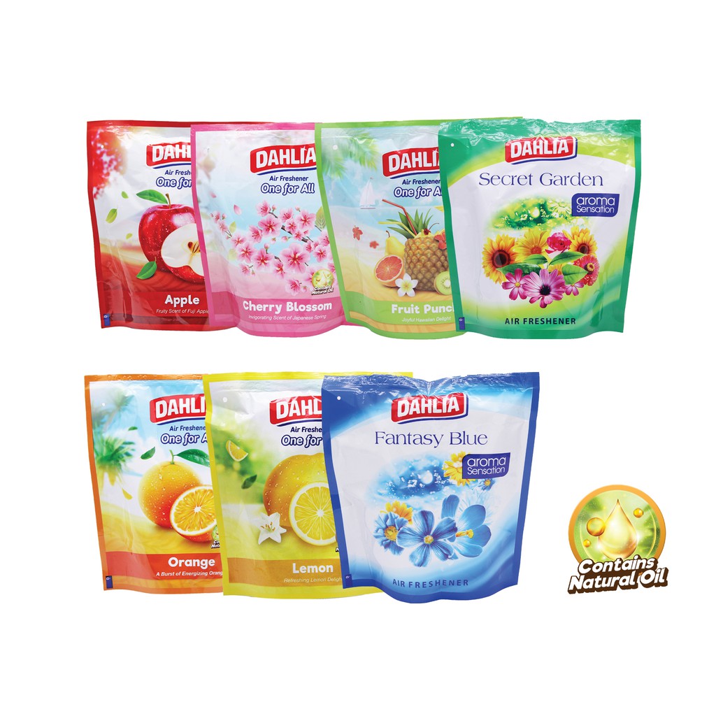 Dahlia Air Freshener One Of All 75 Gram merupakan pengharum udara yang dapat memberikan kesegaraan alami dan tahan lama di ruangan rumah. Pengharum ruangan dengan keharuman orange yang menyegarkan. Mudah digun