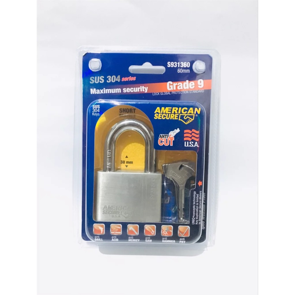 Name: Gembok American Secure 60mm Leher Pendek Anti Potong Dan Cairan Setan