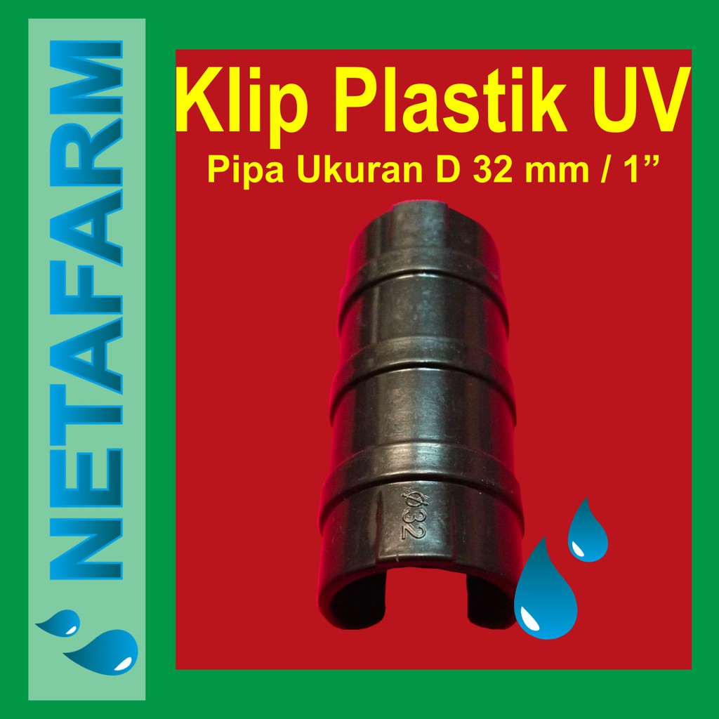Deskripsi Klip Plastik UV / Klip Insectnet Paranet D32 pipa 1" ( 1pcs )Klip Plastik UV Klip Greenhouse Insectnet Paranet - diameter 32mm Untuk Pipa 1 dimKlip Penjepit Plastik adalah alat yang di gunakan untuk menjepit plastik UV / Screennet / Paranet yang sangat aman tanpa merusak atau melubangi plastik.Cara penggunaan Klip Penjepit Plastik UV yaitu letakkan Plastik di antara Pipa dengan klip penjepit. Lalu tekan atau jepit plastik sampai seperti yang di gambar. untuk pemasangan, pasang dengan jarak antara 1 meter.SpesifikasiWarna : HitamPanjang : 8 cmDiameter : 32 mmUntuk Pipa Ukuran :