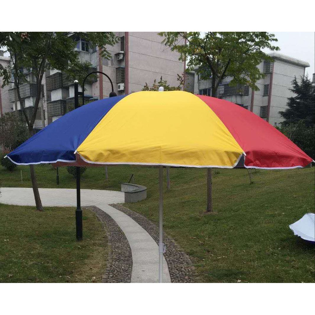 BARANG READY(BANYAK), SILAKAN LANGSUNG DIORDERDijual Payung tenda untuk jualan, atau taman, cafe dengan spesifikasi:- Ada pelindung UV- Ukuran Diameter Jari2 Payung dan kain = 90 cm x 2 = 180 cm (diukur dari ujung atas ke ujung kain bawah dalam keadaan tertutup (lipat) - Diameter Sewaktu Dibuka Jari2 Melengkung 153 cm diukur lurus ujung kiri kain tarik lurus kekanan ujung kain - Payung ini bisa dilipat - Tiang Terdiri Dari 2 Bagian Yang Bisa Disambung (94cm dan 96cm) - Tinggi Tiang Setelah Disambung -+ 180cm (Ketinggian Bisa Disesuaikan) - Berat asli 0,8 kg- Berat volume 1.3kg/pc- Bahan 100% anti air- Tidak termasuk kaki / tripodLAPISAN DALAM WARNA SILVERPilihan warna : PelangiProduk sebelum kami kirim akan di periksa terlebih da