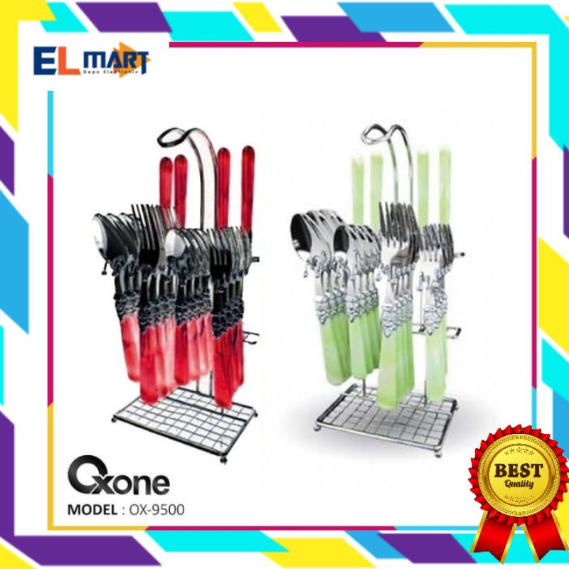Sendok Set Oxone OX-9500- 4 Pcs Garpu Makan Stainless- 4 Pcs Sendok Makan Stainless- 4 Pcs Sendok Teh Stainless- 4 pcs Garpu Kue Stainless- 4 Pcs Pisau Makan Stainless- 1 Pcs Rak Chrome- Bahan dari Stainless- Food Grade- Aman untuk makanan- handle dari plastik bermotif marble/marmer- bahan tebal- tidak mudah bengkok- mudah dibersihkan- mudah disimpan- tidak terdapat tutup- Bahan Berkualias Stainless Steel- Di lengkapi dengan Hanger- Sendok kualitas Oxone yang sudah teruji kemampuanya.Warna : Merah & H