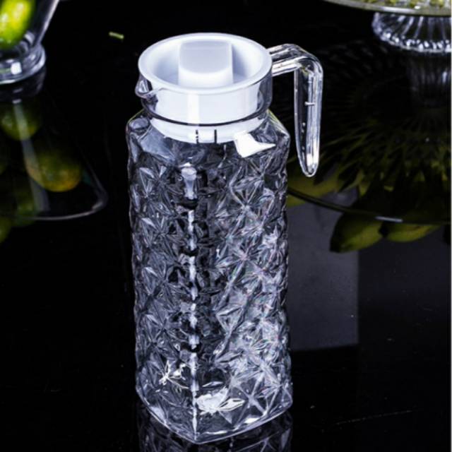 Tempat minum Penyimpanan air Botol Minum 1 ltBahan : akrilikKapasitas : 1 ltBening tembus pandangCocok disimpan di lemari es atau ruang keluarga Tinggi : 24 cmP x L : 8 x 8 cmBisa digunakan untuk menyajikan sirup atau minuman lainnya..Selamat Berbela
