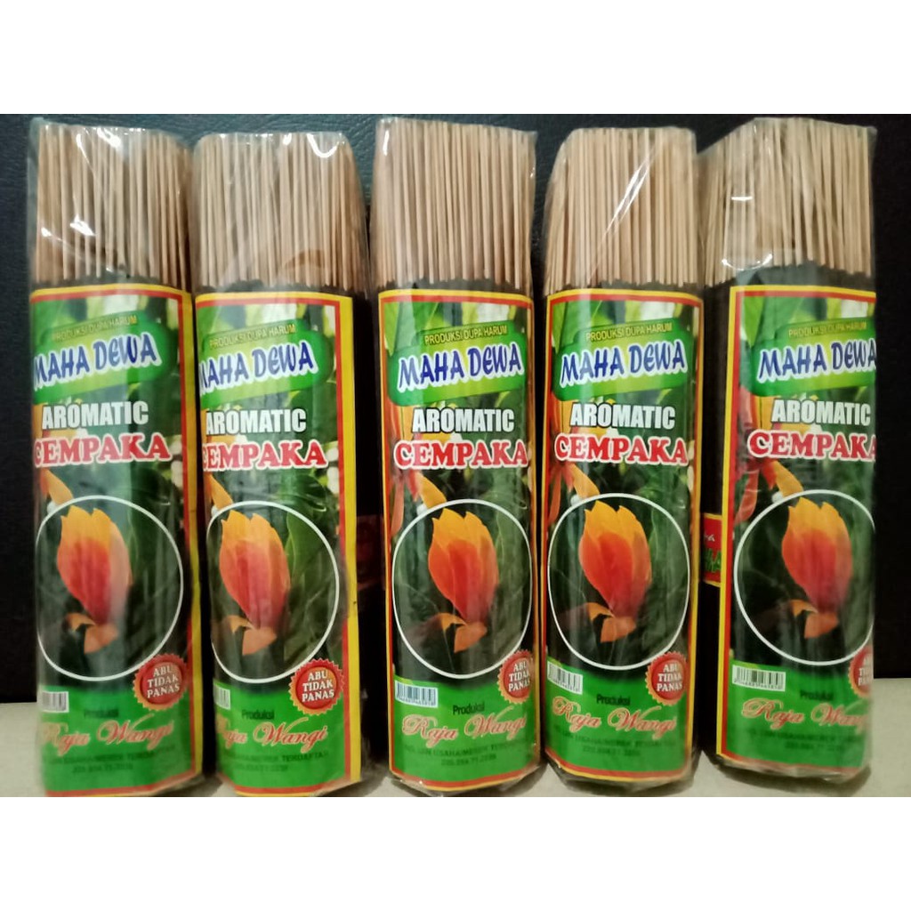 Satu stik dapat menyala +/- 1 JamWarna Stik : HitamAroma : CempakaBerat 350 gramIsi : 200 StikPanjang Stik : 23 cmMerk : Raja WangiHarga Rp 25.000 per bungkus bukan per pack.Kegunaan : - Sarana Ibadah- Aroma terapi- Menenangkan hati- Sarana Meditasi- Menarik energi positifPerhatian:1.) Harap dupa dibakar pada ruangan yang memiliki ventilasi udara yang cukup.2.) Jauhkan dari bahan yang mudah terbakar3.) Jangan mendekatkan hidung ke bagian dupa yang terbakar4.) Jauhkan dari jangkauan anak
