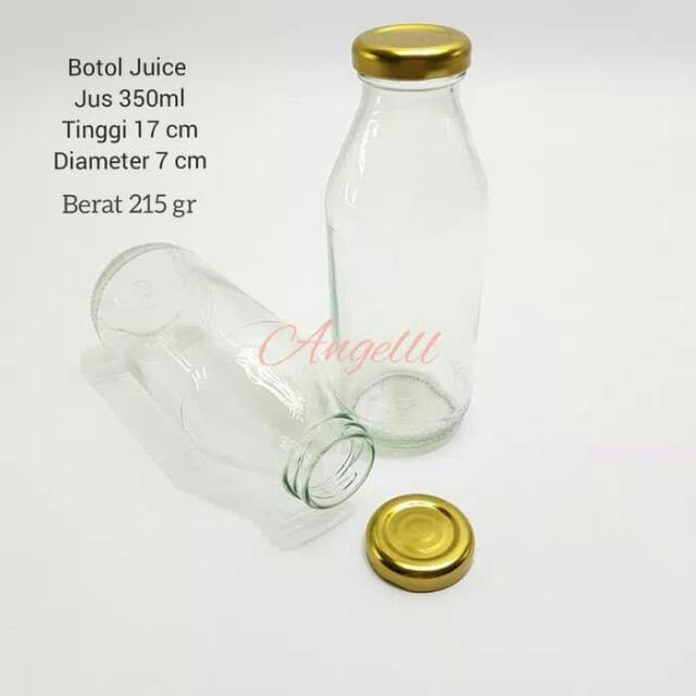 BOTOL BARU DARI PABRIKBUKAN REKON ATAU BEKASBotol kaca 350ml dengan tutup derat baru 100% goldDimensi:Tinggi 17cmHarga sudah termasuk packing lapis karton . Botol di bungkus 1 / 1 kertas brosur tebal Jumlah Besar Chat kamiBotol ini biasnya dipakai untuk juice, susu madu maupun herbal.Mohon konfirmasi ketersediaan dan kapasitas barang terlebih dahulu sebelum memesan.TIDAK ADA PENGGANTIAN untuk barang yang pecahKami berusaha untuk packing seaman mungkin untuk meminimalisir resiko pecah, hanya kami tidak dpt memantau kinerja dari crew ekspedisinya.Konsumen bijak akan mengerti dengan kondisi seperti itu.Semoga info ini bermanfaat dan terjalin hub dagang yg saling menguntungkan, terimak