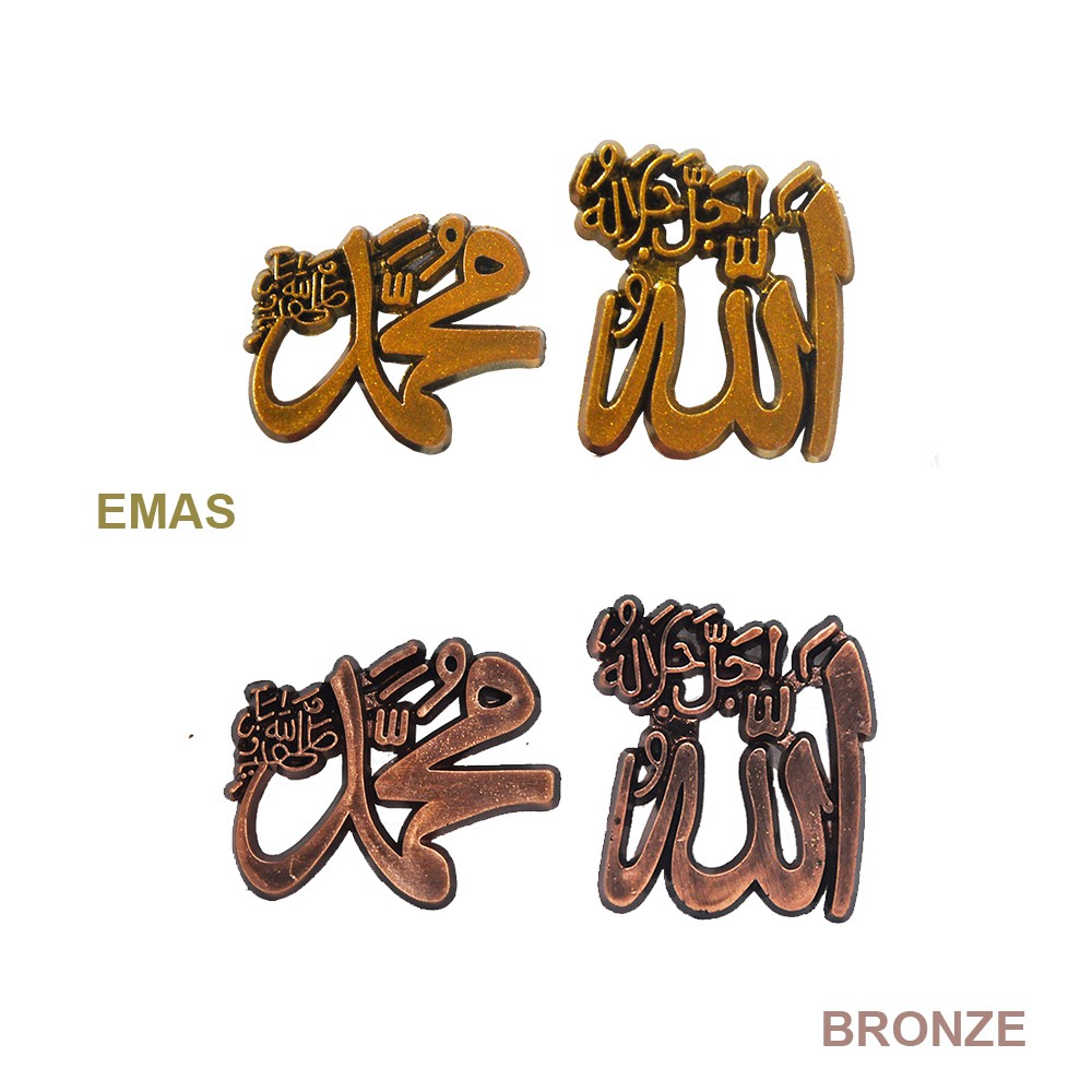 Souvenir Asesoris Tempel Untuk Craft Mahar / ScrapbookIndex : 12085 & 12322Model Embos Ukuran : 4x5 cm Lafadz : Allah & MuhammadKode : BS-902Warna : bronze (perunggu) dan