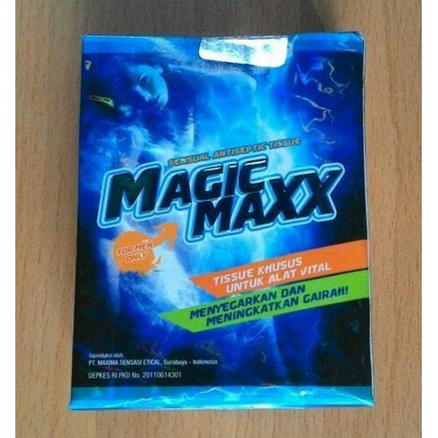 Tisu Pria magic maxxxProduk "Magic Maxxx" yang kami pasarkan di jamin ASLI/ORIGINALKemasan Produk Magic Maxxx :- Per kotak isi 8 SachetPRODUK INI HANYA DIJUAL UNTUK PASANGAN RUMAH TANGGA DEMI MENINGKATKAN KEHARMONISAN Khasiat & Kegunaan dari produk Magic Maxxx :- Meningkatkan kekuatan dan daya tahan lebih lama saat berhubungan dengan pasangan.Cara Menggunakan Magic Maxx :Usapkan Tissue pada area Sensitif Pria dan biarkan selama 5 sampai 15 menitProduk TISU MAGIC MAXxX diproduksi oleh PT. Maxima Sensasi Etical, Surabaya - Indonesia. Sudah terdaftar di KEMENKES RI dengan nomor PKD 20110614301.PERHATIAN:- Hanya untuk pemakaian luar- Pemakaian tisu hanya untuk sekali